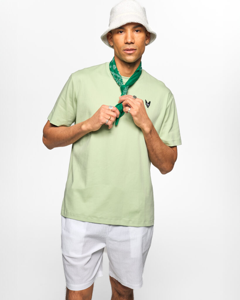 Our Relaxed Tee. in a Vibrant green,  with our playful rebeloup patch on chest.