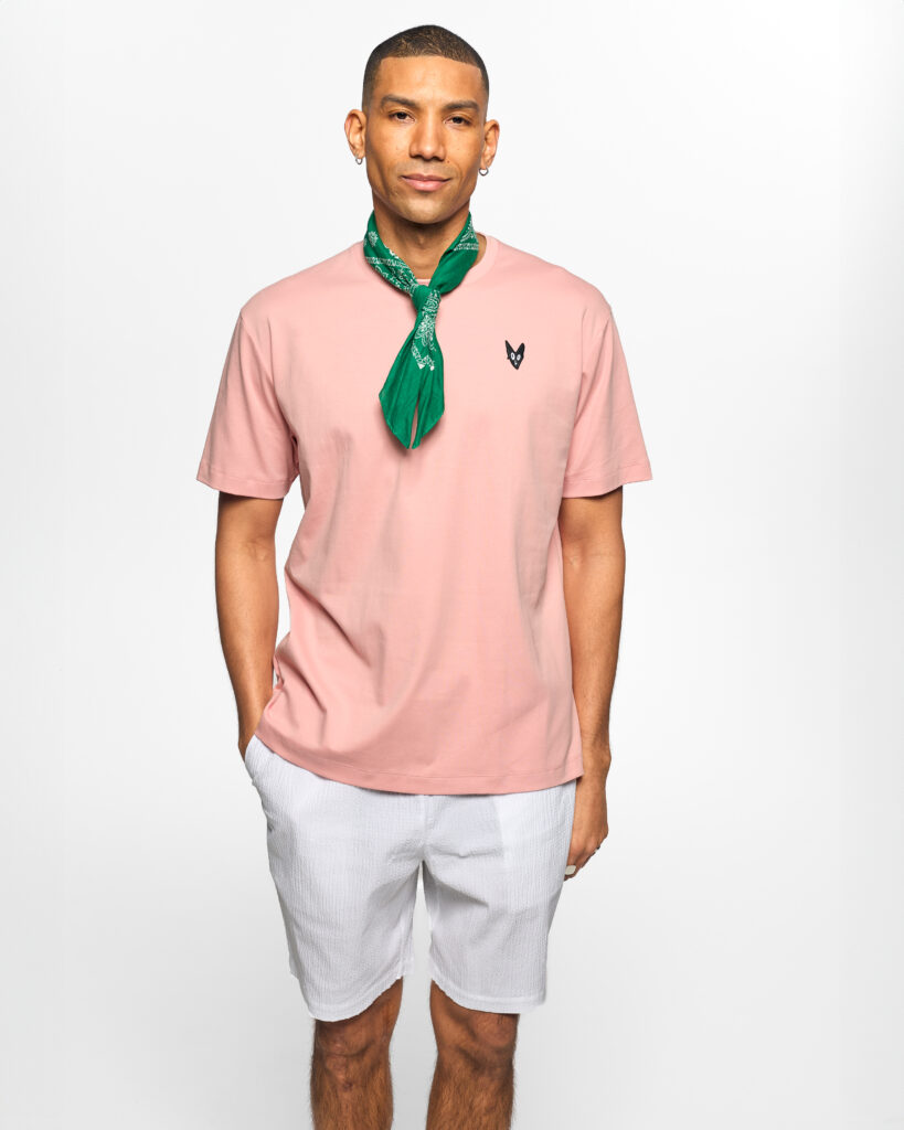 Our Relaxed Tee. in a dusty Pink,  with our playful rebeloup patch on chest.